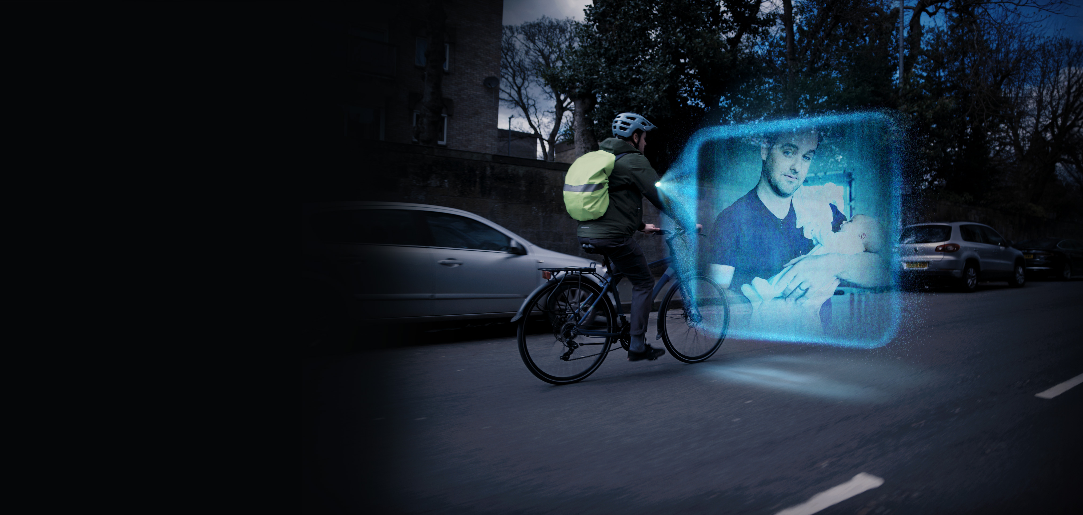 We reframed the space around a cyclist not as a measurement, but as a life. Visually, we placed a “scrapbook” of memories into that 1.5m buffer, showing the full life being protected.